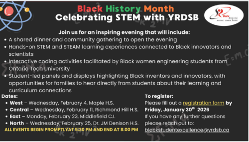 Celebrating STEM with YRDSB for Black History Month- click here to register